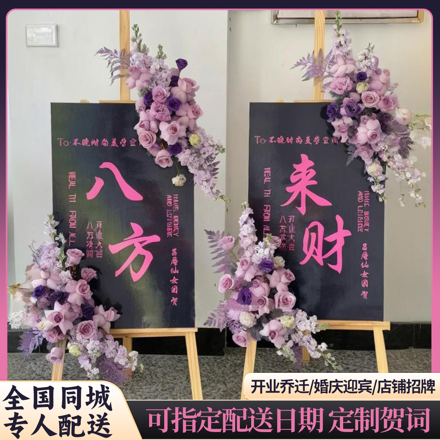 北京上海画板鲜花开业花篮同城速递乔迁庆典生日迎宾水牌应援花篮