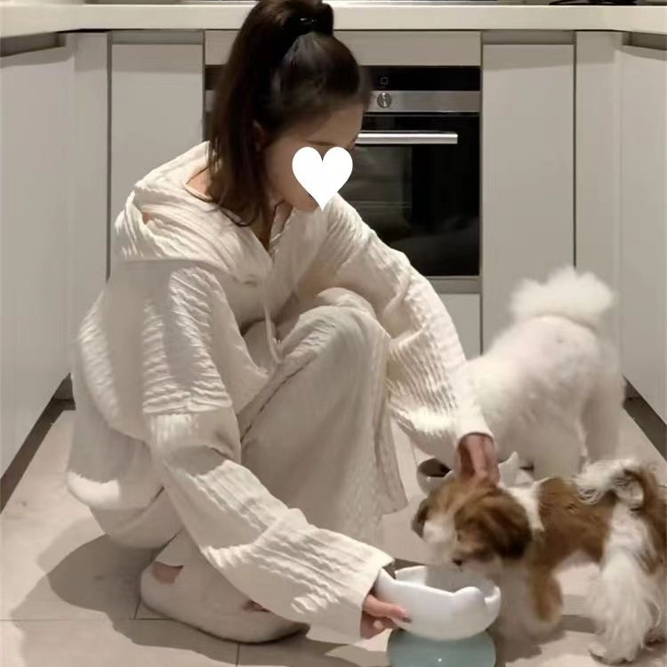 秋装软糯纯色宽松女毛衣外套松弛感慵懒简约中长宽连帽纯色连衣裙