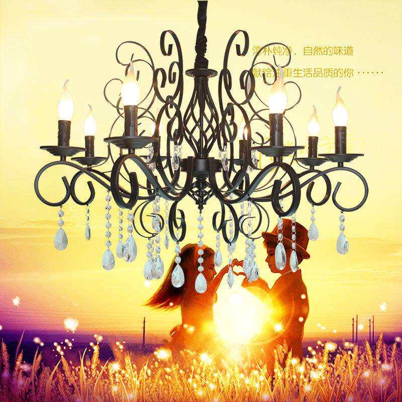 水晶吊灯欧式蜡烛灯客厅餐厅卧室灯简约铁艺双层别墅家居灯具灯饰