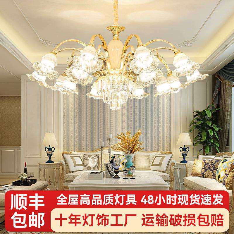 美式客厅吊灯法式复古简约卧室餐厅欧式别墅轻奢大气全铜水晶灯具