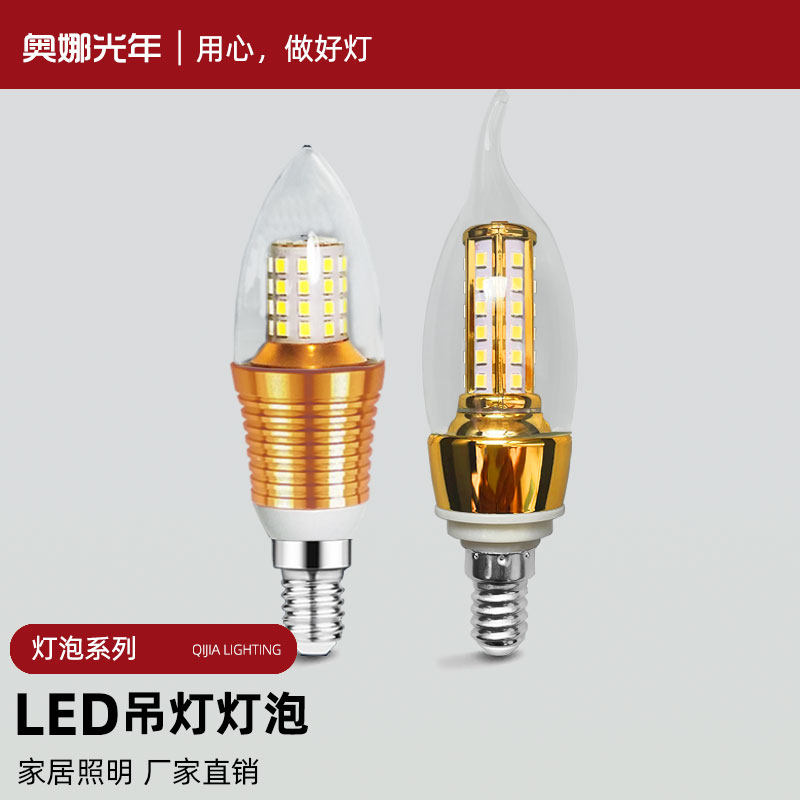超亮led蜡烛灯泡e14小螺口e27节能拉尾欧式水晶吊灯家用暖白光源