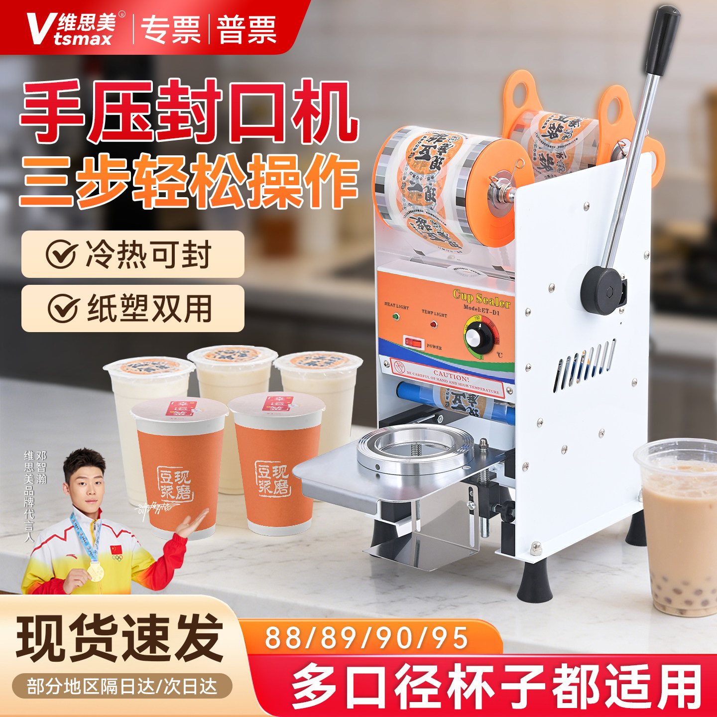 维思美半自动封口机商用奶茶封口机早餐店手压豆浆封口机纸塑双封