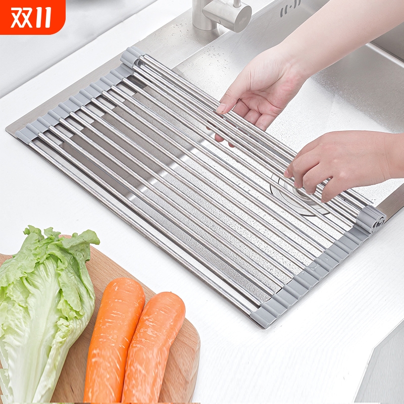 不锈钢水槽沥水篮304沥水碗架厨房置物架网滤水池洗碗池沥水架