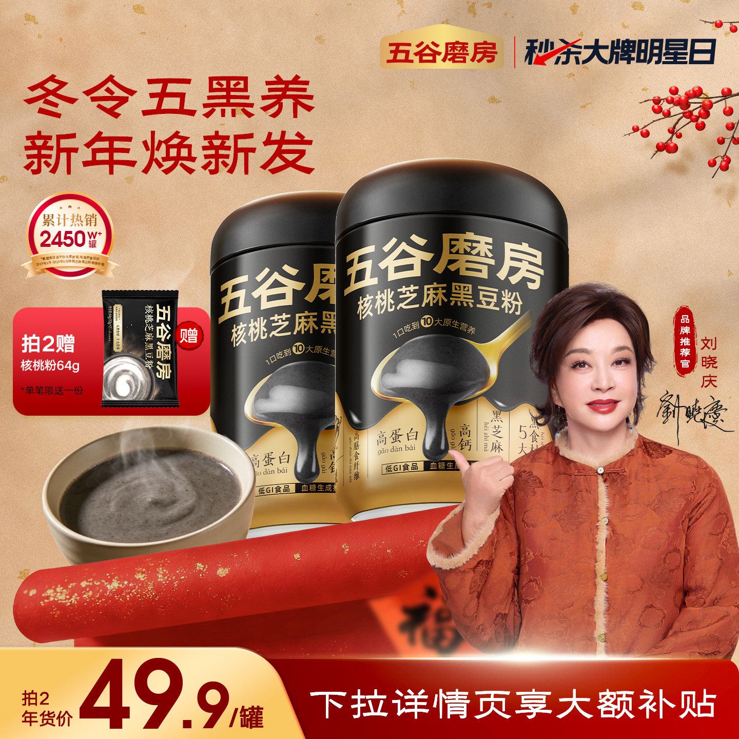 邹有才黑芝麻核桃黑豆粉冲泡即食营养早餐代餐粉养五黑粉健康谷物