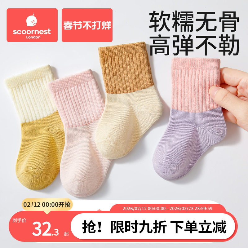 婴儿袜子春秋薄款纯棉男女宝宝秋冬儿童袜子一岁1到3岁中筒袜a类