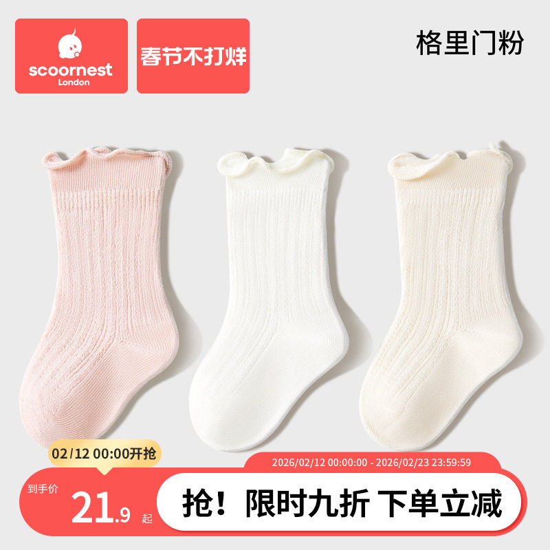 科巢婴儿袜子女童秋冬季纯棉a类宝宝1到6个月-3岁无骨儿童中筒袜