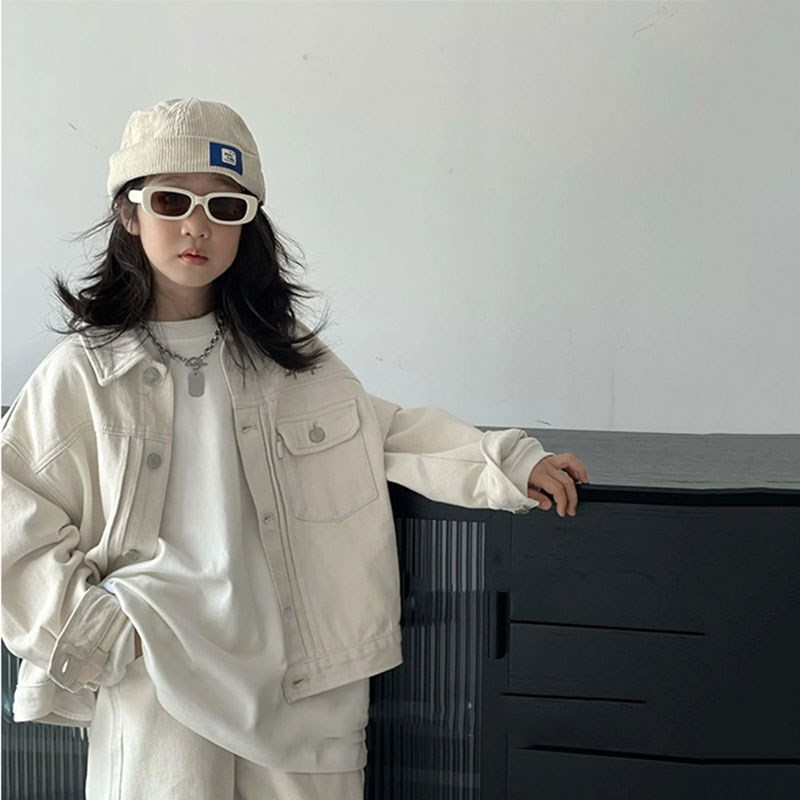 女童白色牛仔外套春装2025新款儿童牛仔夹克大童洋气男童百搭上衣