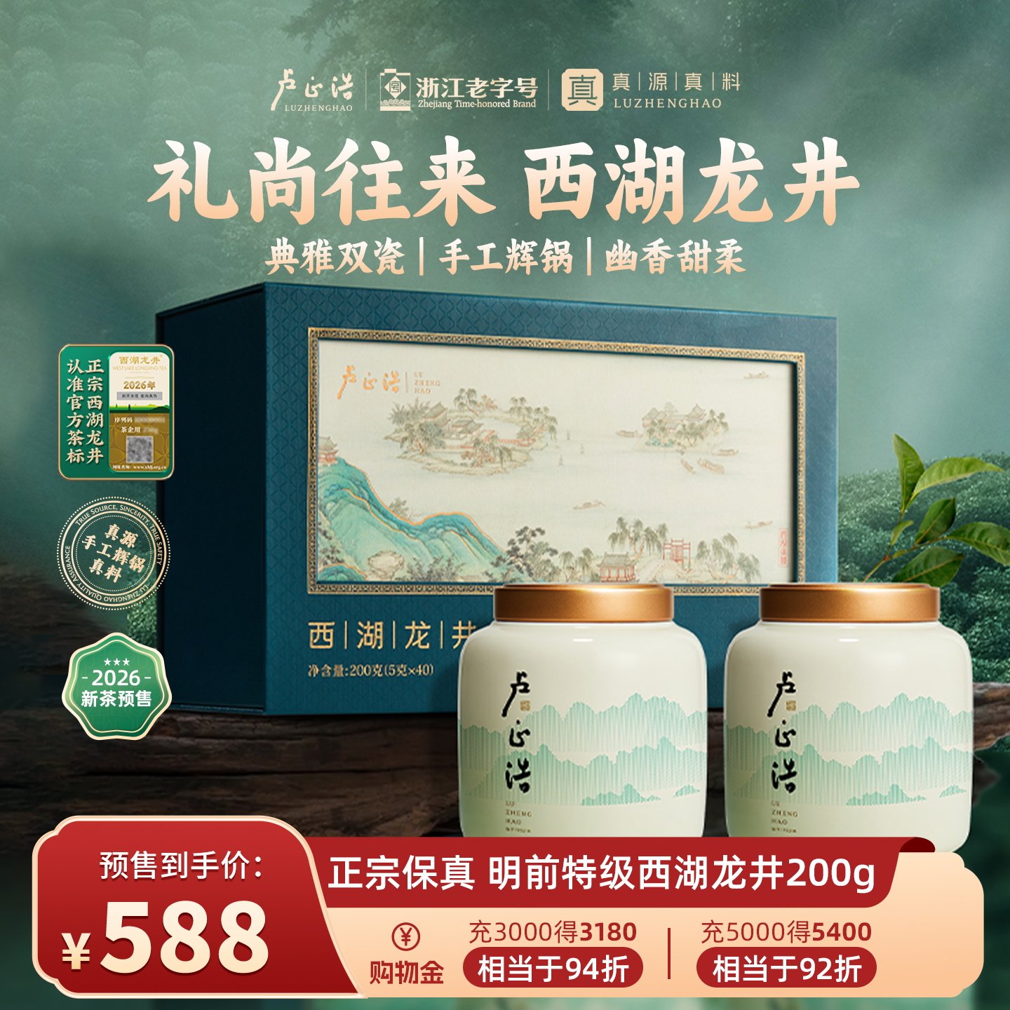 2026新茶预售卢正浩明前特级西湖龙井高档茶叶礼盒装节日送礼长辈