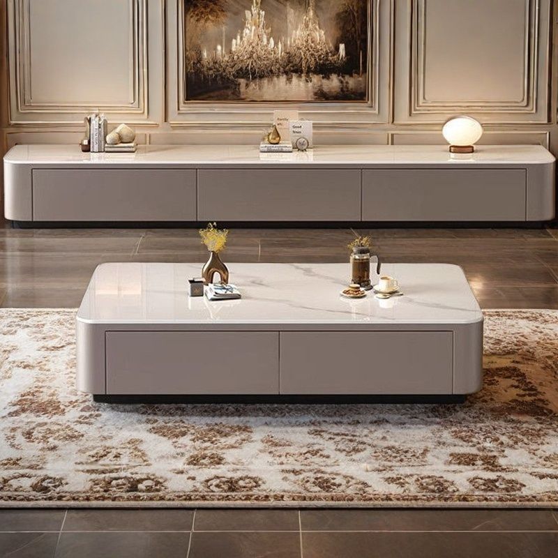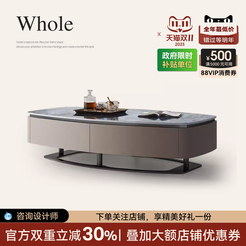 诚骏意式极简茶几岩板轻奢现代茶几电视柜组合客厅家用长方形茶机