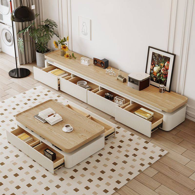 茶几奶油风原木家用客厅简约现代茶几电视柜组合套装2024新款茶几
