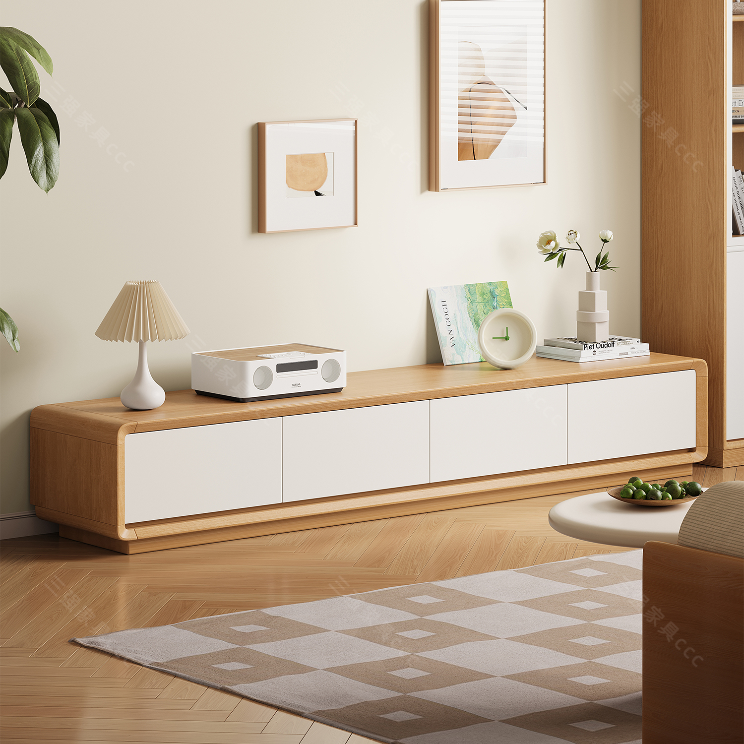奶油风落地电视柜现代简约小户型实木客厅2025新款电视机柜茶几