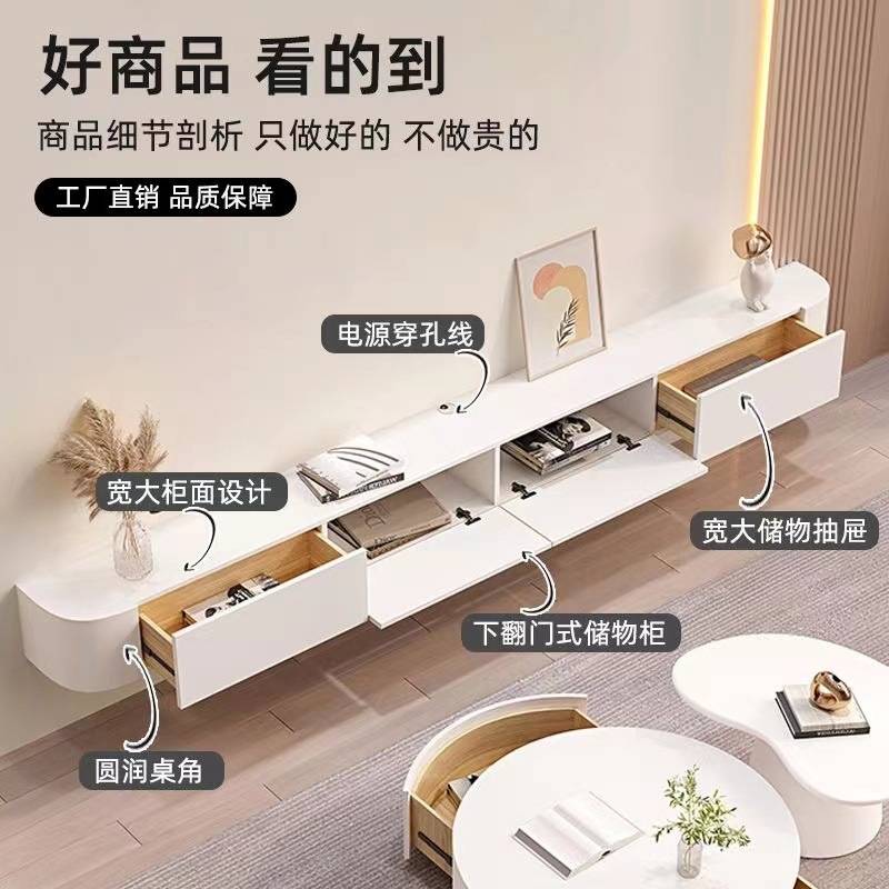 实木悬空简约现代茶几电视柜客厅小户型挂墙电视柜挂墙岩板悬浮柜