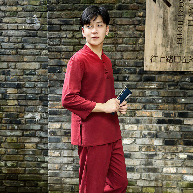 男士瑜伽服灯笼裤长裤练功裤大码宽松休闲晨练运动太极服莫代尔夏