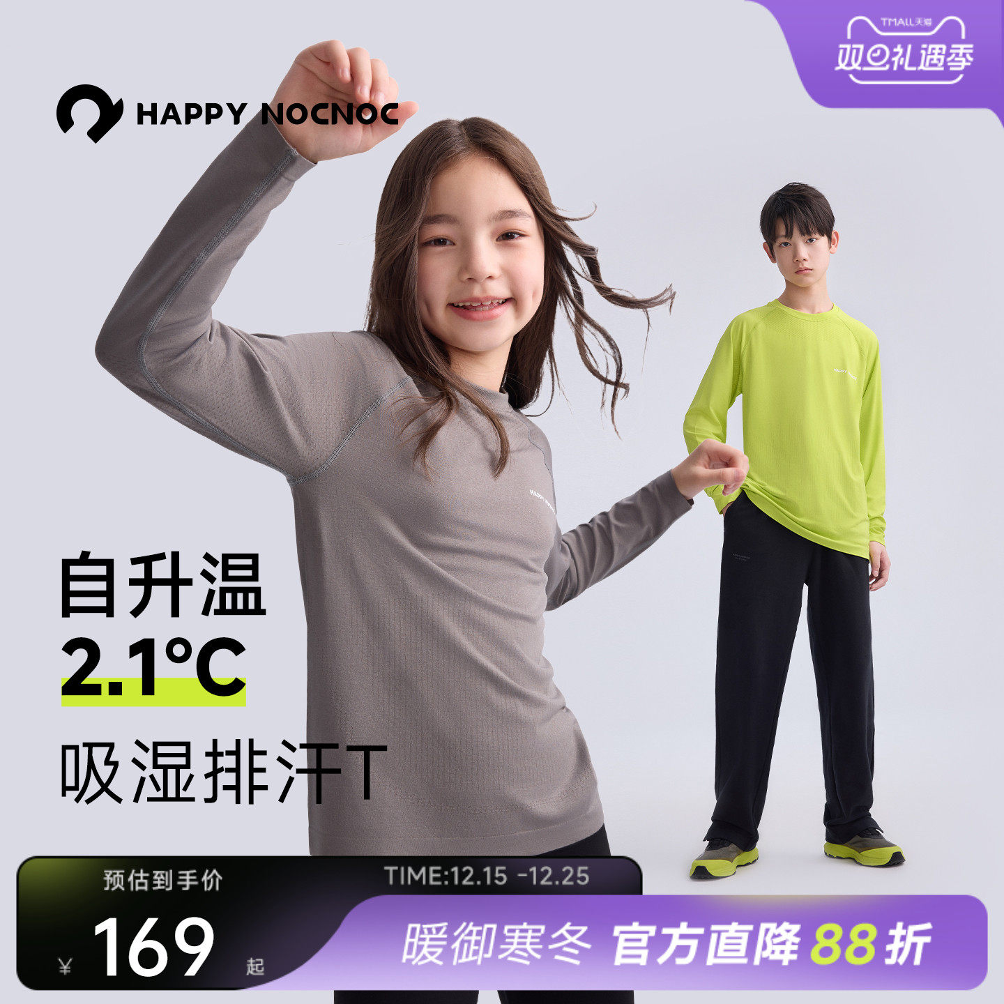 happynocnoc儿童一体织速干t恤保暖吸湿排汗速干运动瑜伽服男女童
