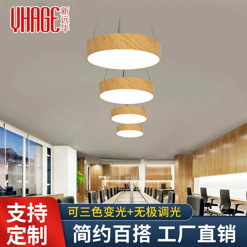 北欧圆形吊灯办公室照明实木纹榻榻米工作室简约书房led吊线灯具