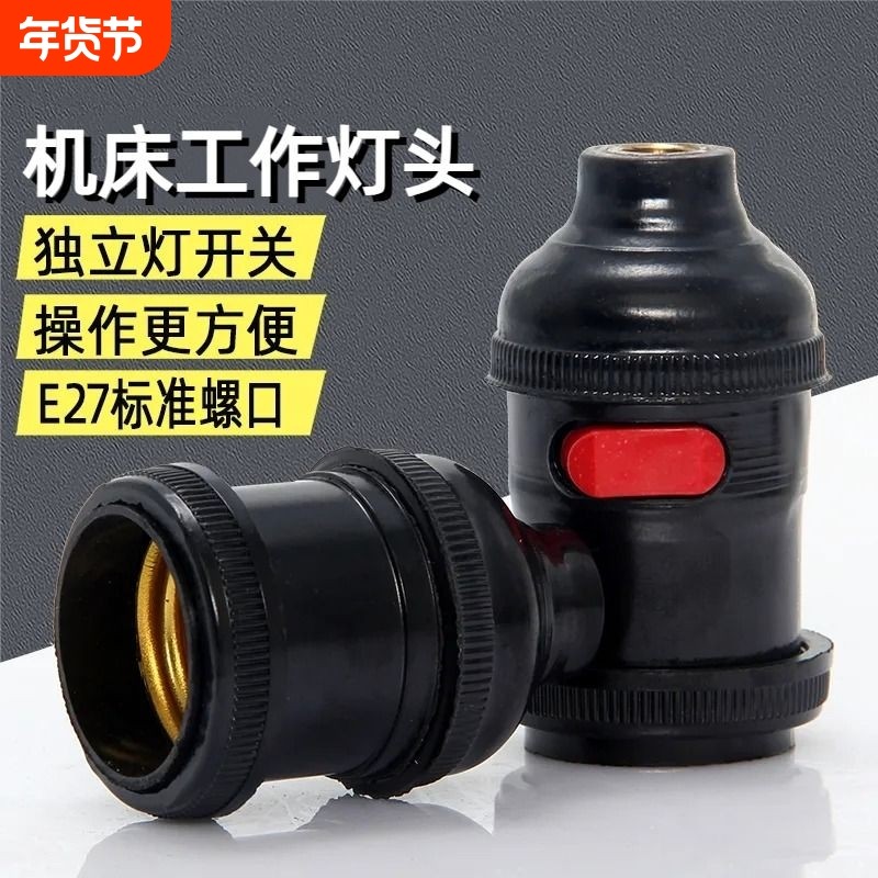 车床管接带开关灯头灯座机床工作灯头E27加厚螺口悬吊灯螺纹外壳