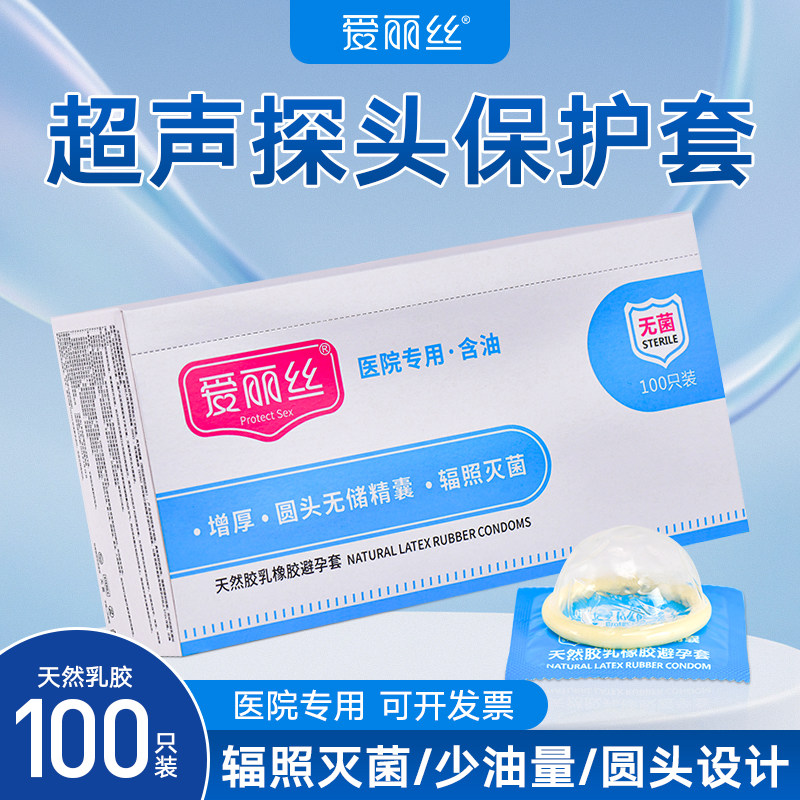 爱丽丝避孕套100只装医院专用超声探头保护套圆头无储精囊无菌套