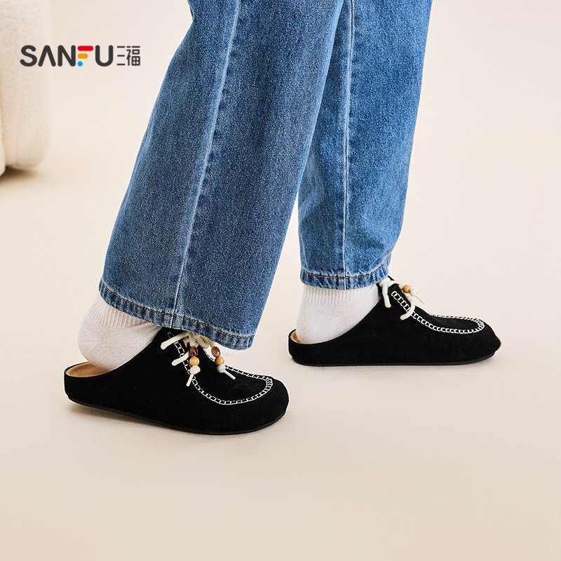三福男凉拖鞋冬季都市游牧串珠半拖袋鼠鞋勃肯鞋男鞋847939
