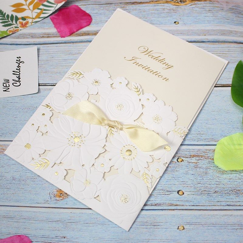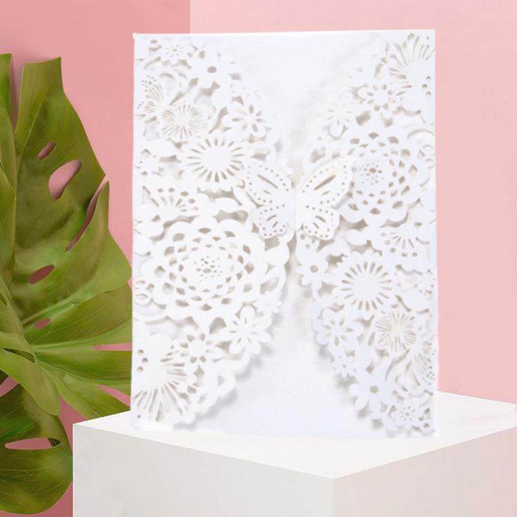 喜帖结婚请柬 欧式个性创意婚礼邀请函跨境外贸白色金色镂空请帖