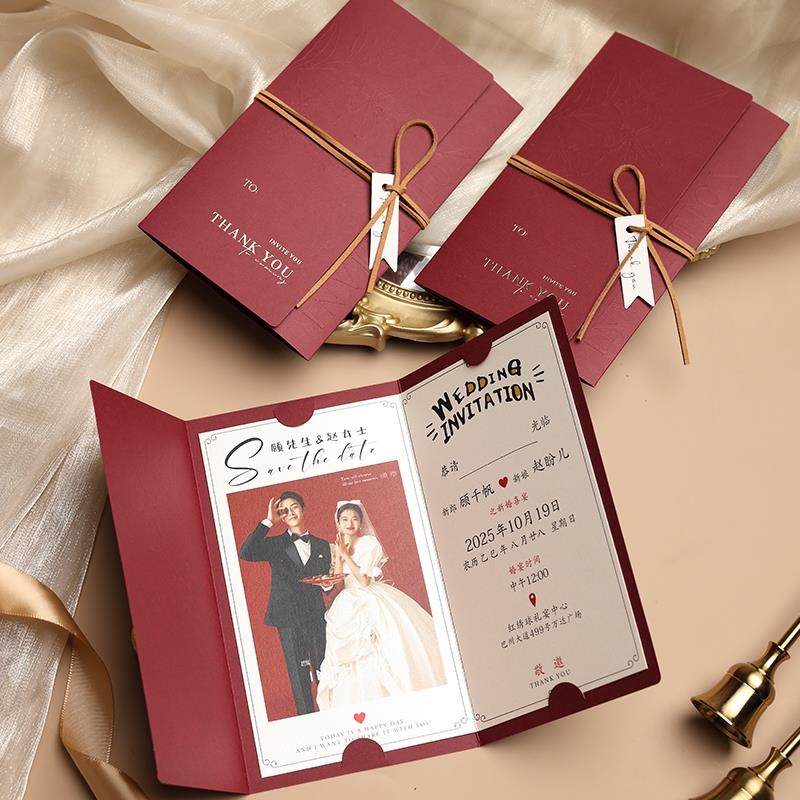 2025创意结婚喜帖红色高级简约婚宴邀请函欧式婚礼请柬定制ins风