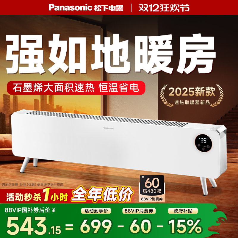 松下热浪取暖器家用踢脚线电暖气片神器冬季2025新款石墨烯暖风机