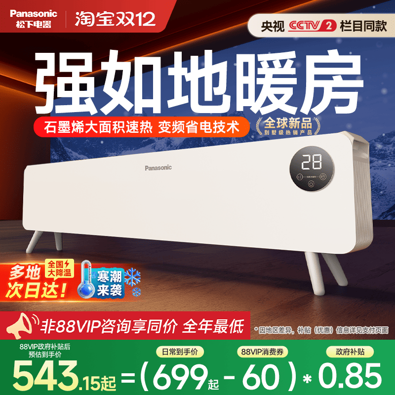 松下暖小白踢脚线取暖器家用石墨烯电暖气片烤火炉暖风机2025新款