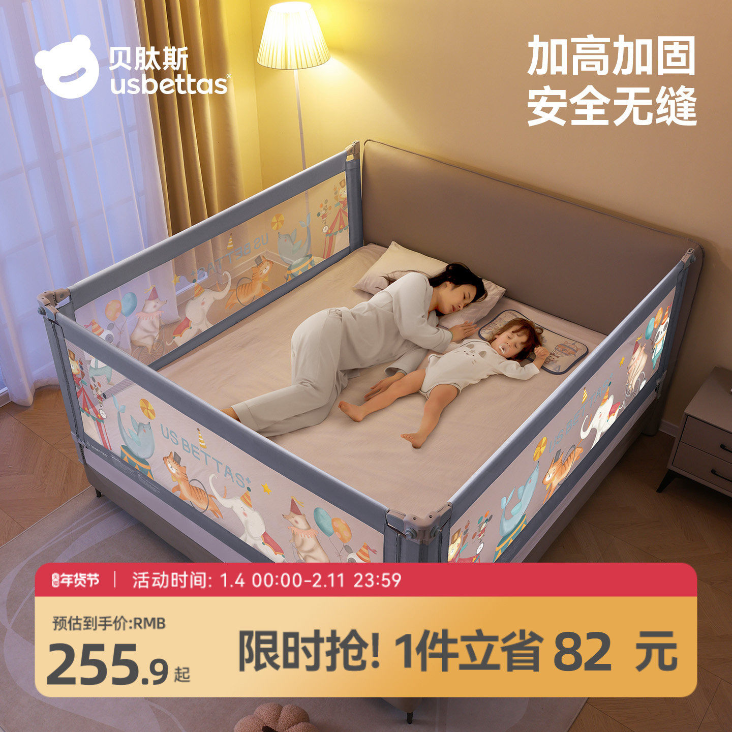 慕卡索床围栏儿童防摔婴幼儿床上防护栏加高防掉床宝宝挡板可升降