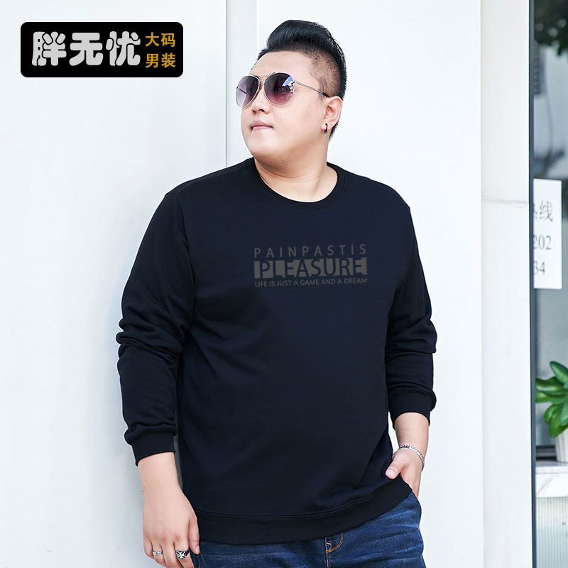 加肥加大套头长袖t恤肥佬特大码宽松大号300斤男胖子印花休闲卫衣