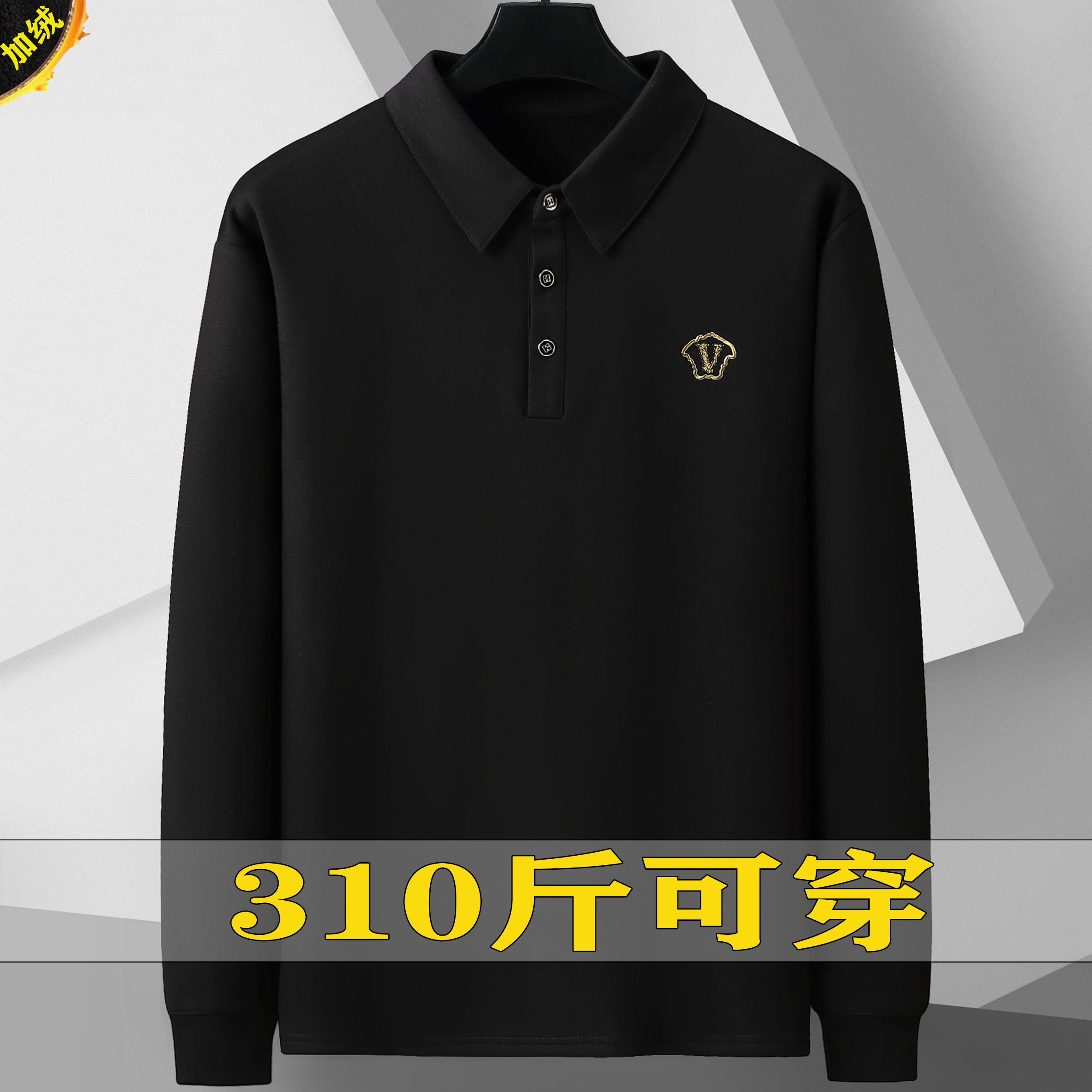 300斤大码翻领长袖T恤男卫衣男套头商务2025新款加肥加大秋冬肥佬