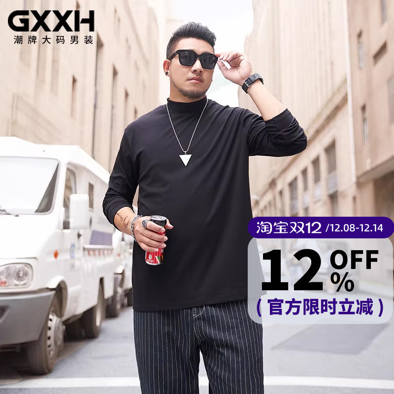 GxxH大码高领长袖T恤男潮牌男装胖子秋冬肥佬套头加肥加大打底衫