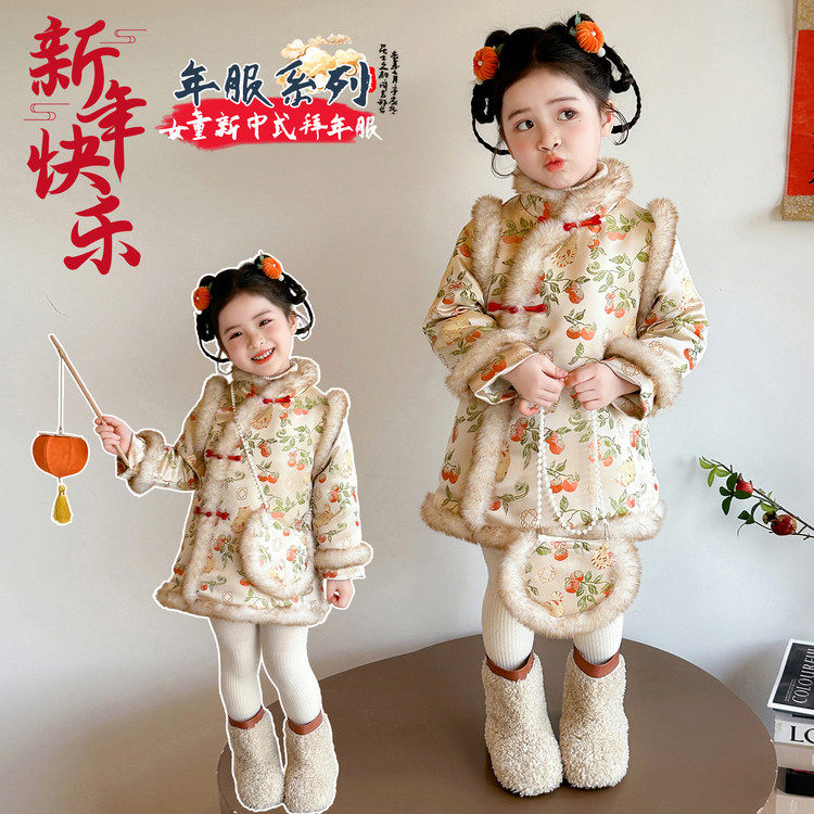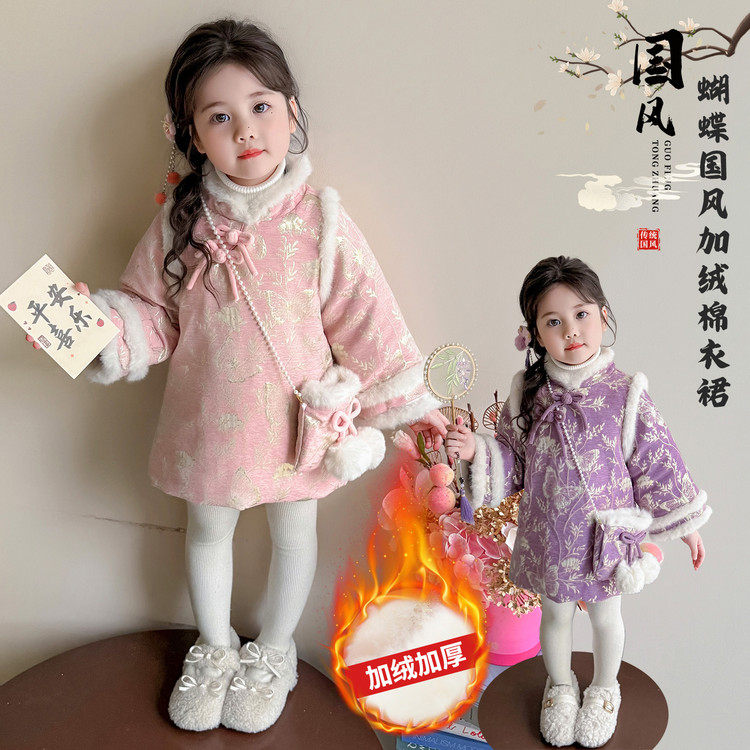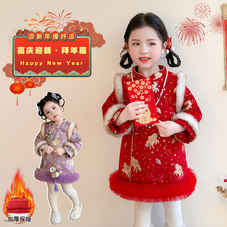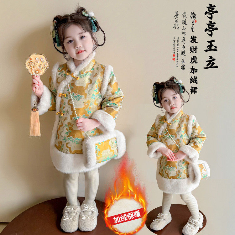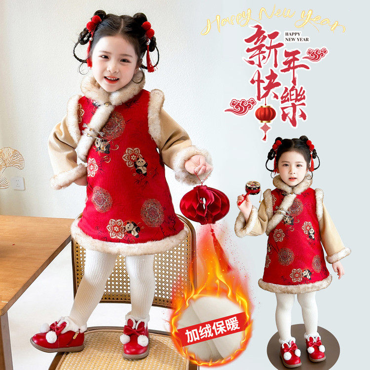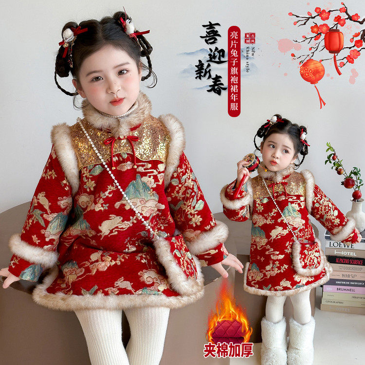 儿童唐装女童拜年服加厚洋气中国风汉服日常喜庆年服秋冬旗袍裙子