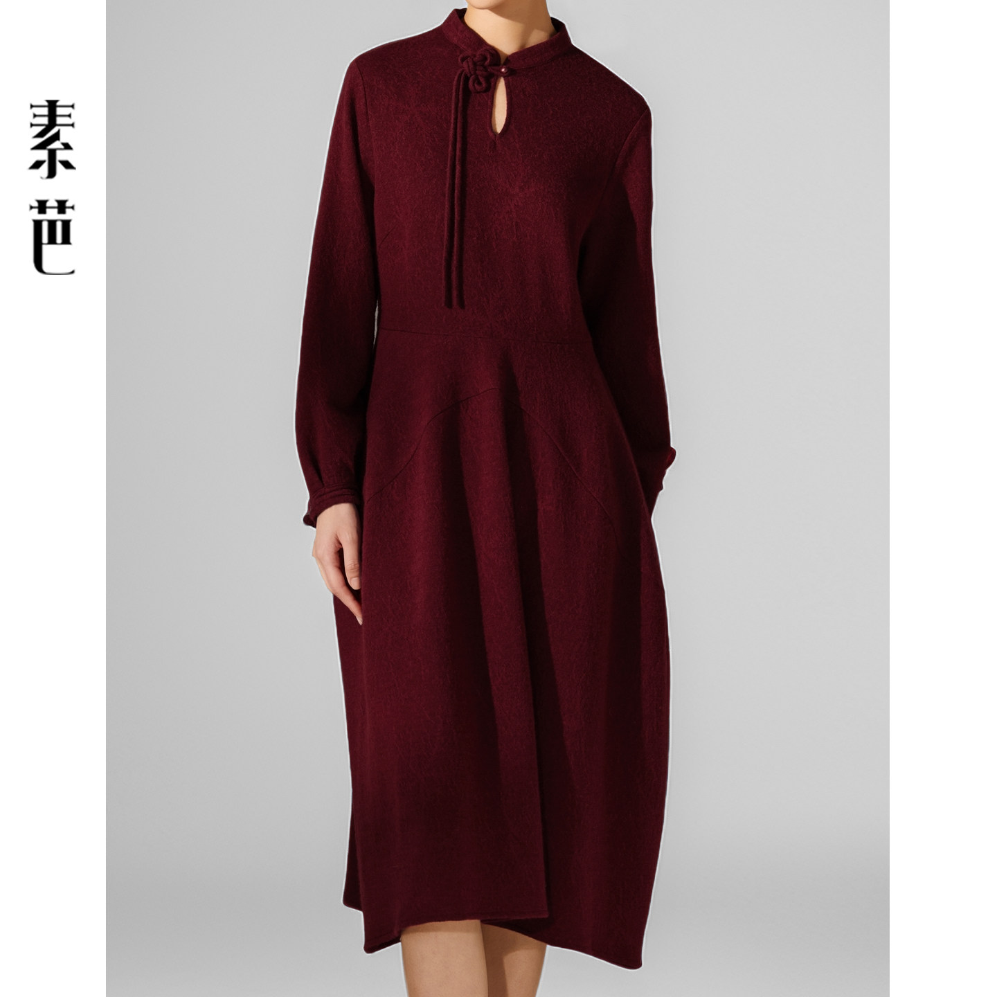 素芭中式流苏盘扣连衣裙女秋冬镂空旗袍领设计时尚百搭长裙SF0762