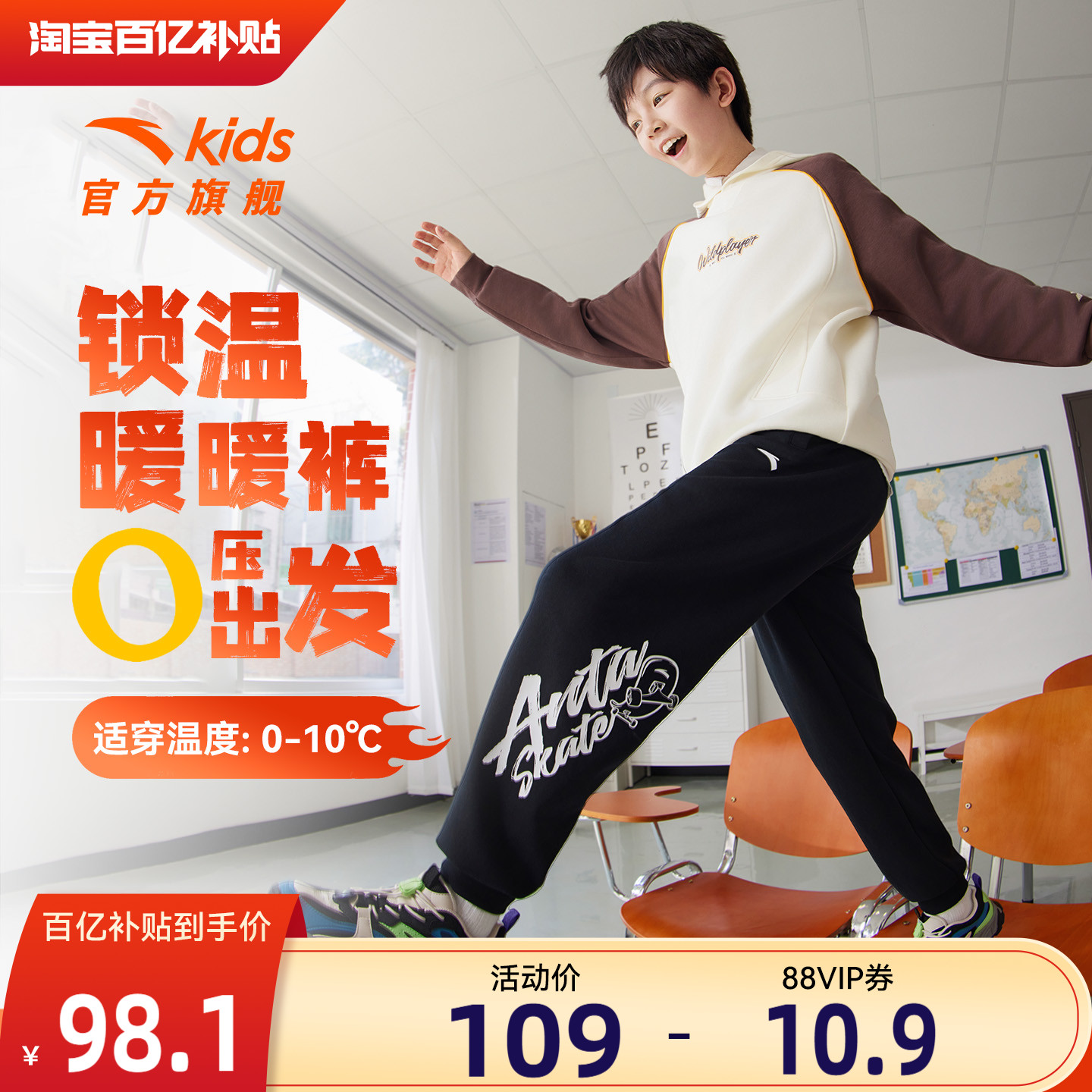 安踏童装男童加绒裤子秋冬款2025冬季新款儿童长裤加厚棉裤运动裤