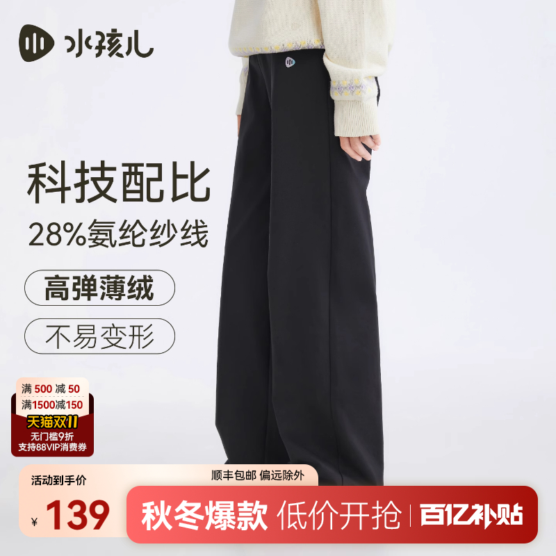 水孩儿儿童长裤2025秋冬新品男童休闲裤女童加绒打底裤喇叭阔腿裤