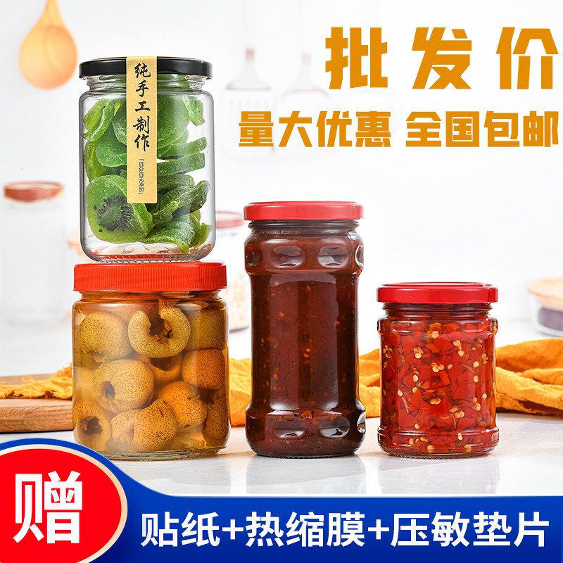 食品级密封玻璃瓶辣椒酱罐子圆形玻璃瓶带盖蜂蜜玻璃瓶家用酱菜瓶