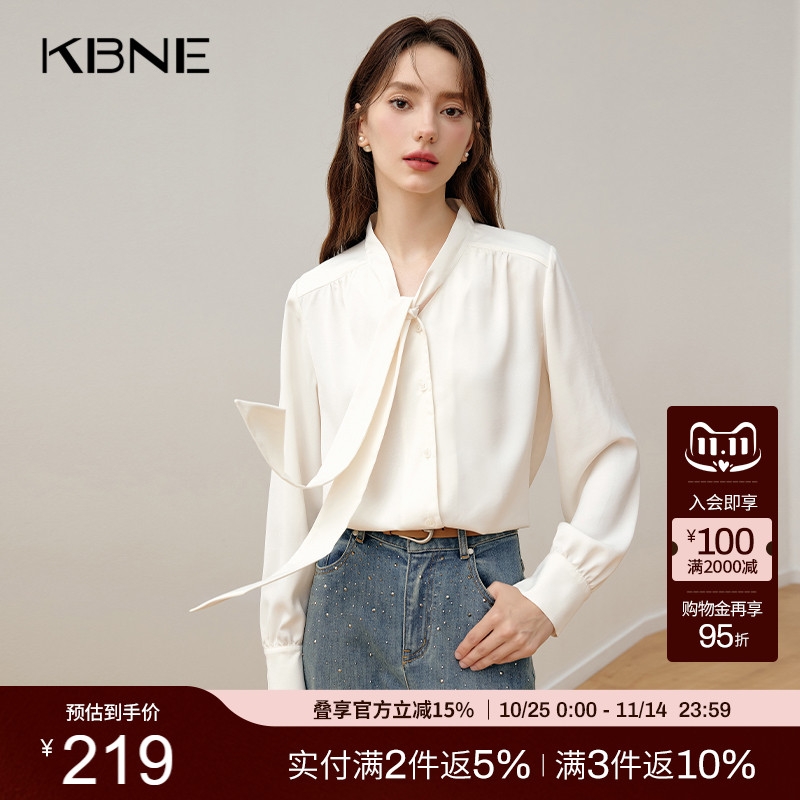 KBNE白色飘带衬衫气质法式慵懒衬衣25秋季新款高级长袖上衣小衫女