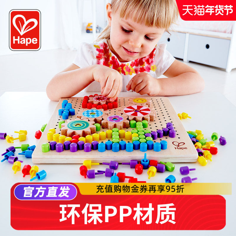 Hape蘑菇钉拼插板拼图丁种蘑菇百变像素画插珠子儿童早教益智玩具
