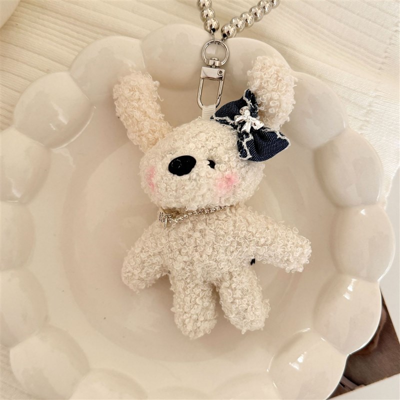 FNDOII真獭兔毛蝴蝶结萌萌兔车钥匙扣挂件毛绒垂耳小兔子包包挂饰