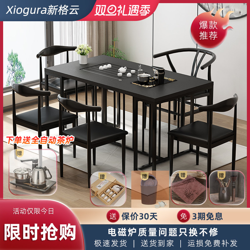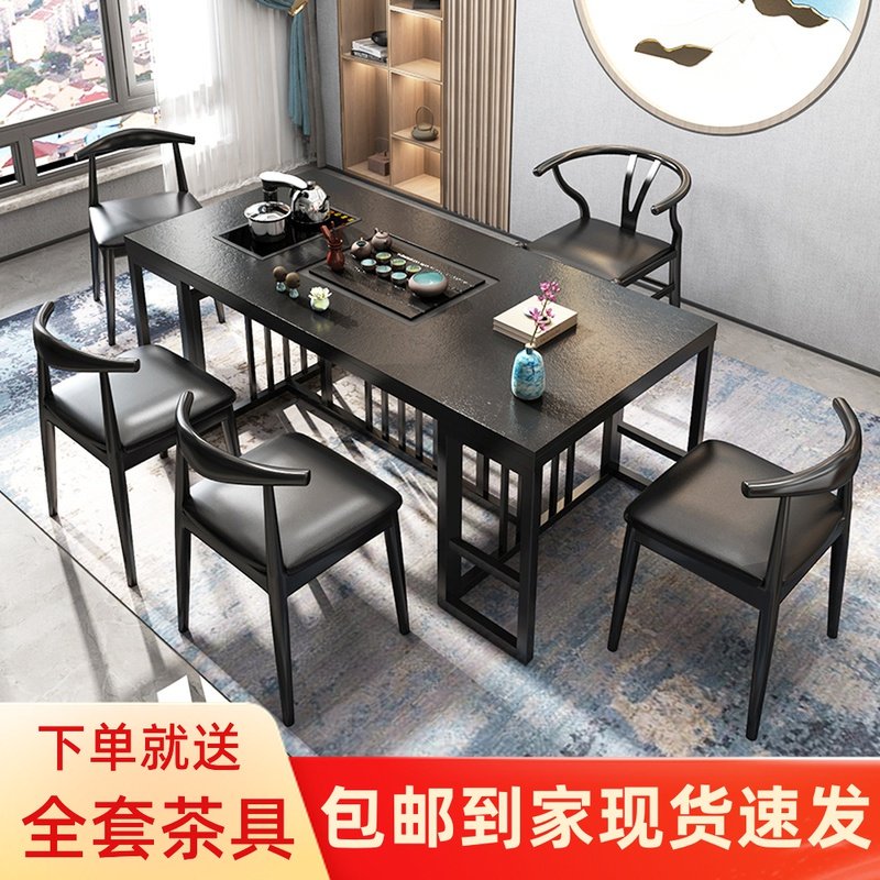 新中式茶桌椅组合火烧石茶几茶具套装一体办公室家用简约型小桌子