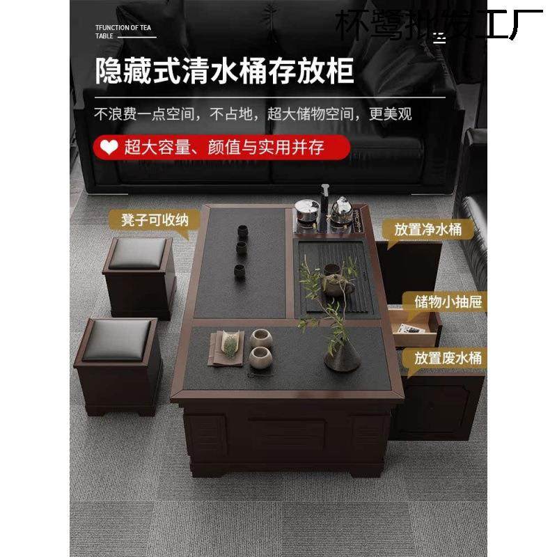 火烧石茶几中式实木小客厅办公室茶道功夫泡茶桌椅多功能一体组合