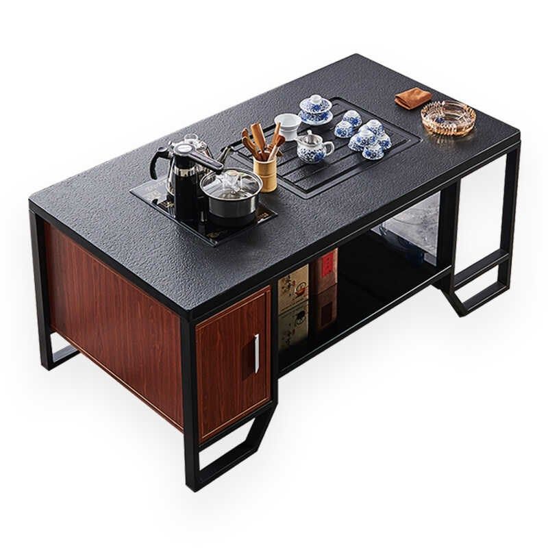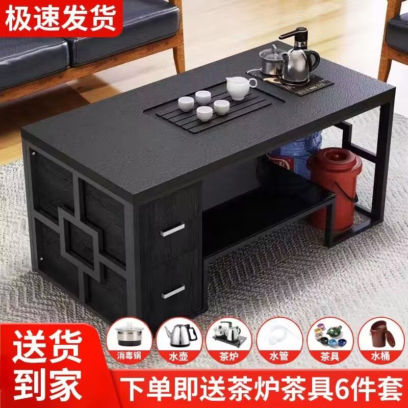 办公室功夫茶几现代简约火烧石茶几带柜子泡茶茶几茶台全自动上水