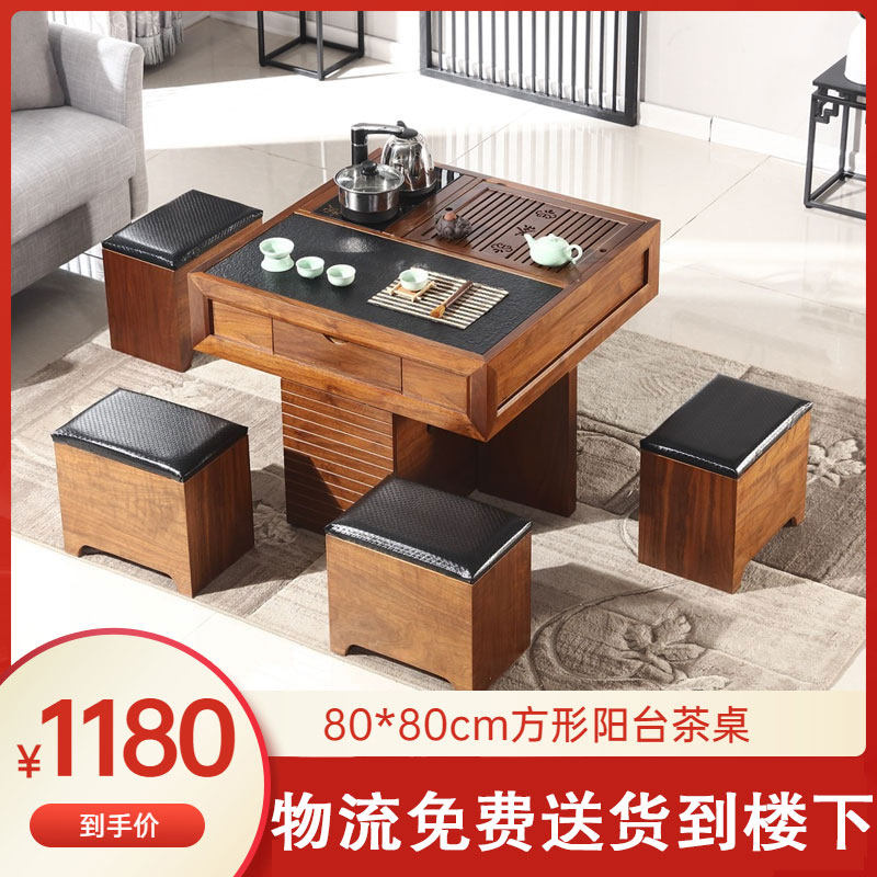 火烧石茶几功夫茶桌椅组合花梨木实木茶台家用烧水小号茶艺桌阳台
