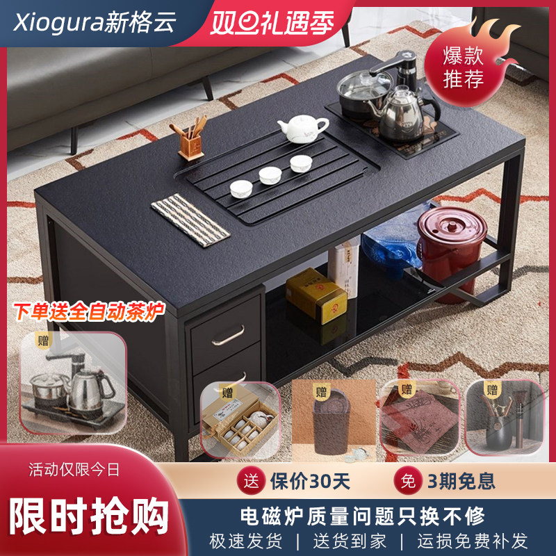 火烧石茶几岩板功夫茶台办公商用茶几现代简约家用茶台烧水壶一体