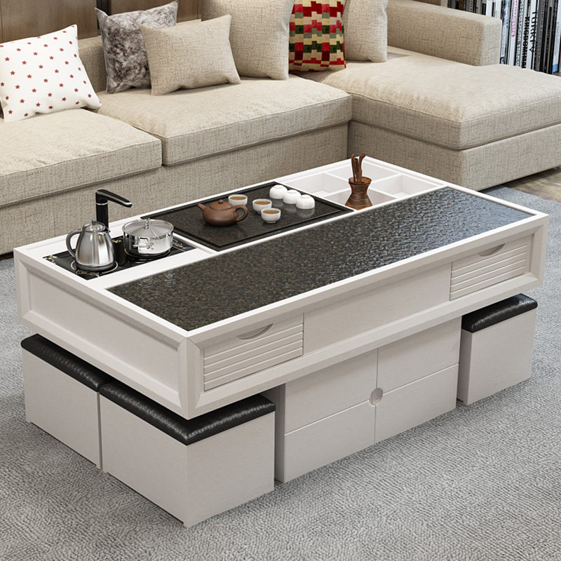 现代简约火烧石茶几多功能功夫茶艺桌大理石桌椅组合办公中式茶台