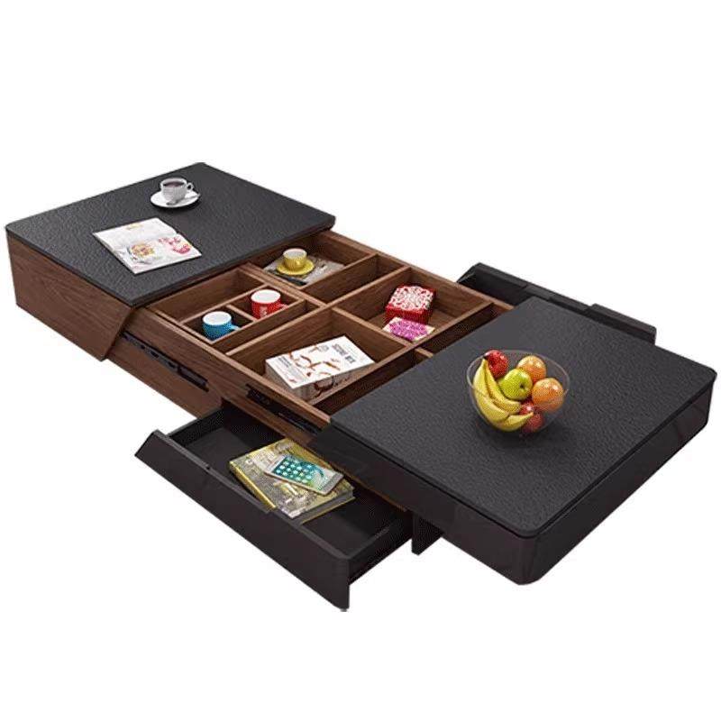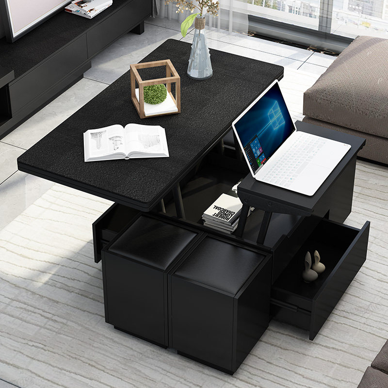 北欧多功能升降折叠茶几餐桌两用小户型黑色火烧石茶几电视柜组合