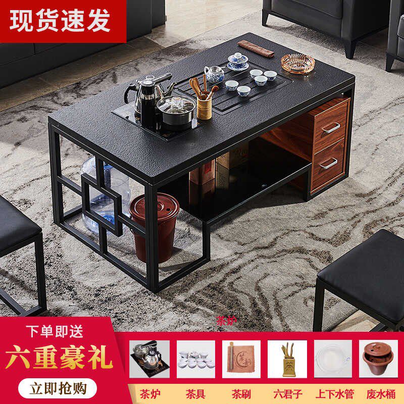 火烧石功夫茶几简约创意办公室碳素钢网红泡茶桌茶台全自动烧水壶