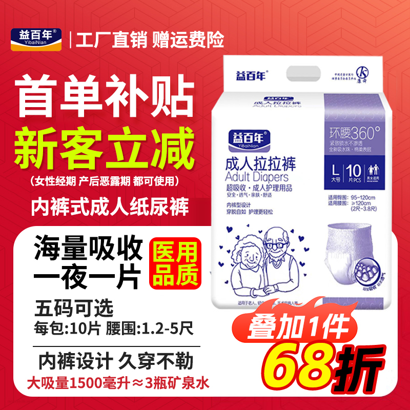 益百年成人纸尿裤拉拉裤老人用尿不湿老年人大号女男一次性内裤式