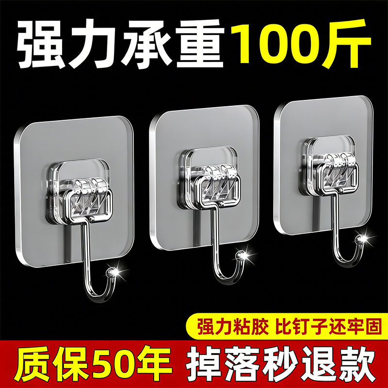 粘钩强力粘贴挂钩免打孔无痕承重粘胶透明厨房墙壁墙面大挂钩整理