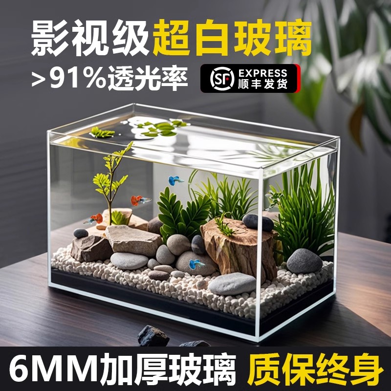 顺丰上门2025新款玻璃金鱼缸长方形缸家用客厅小型裸缸生态水族箱