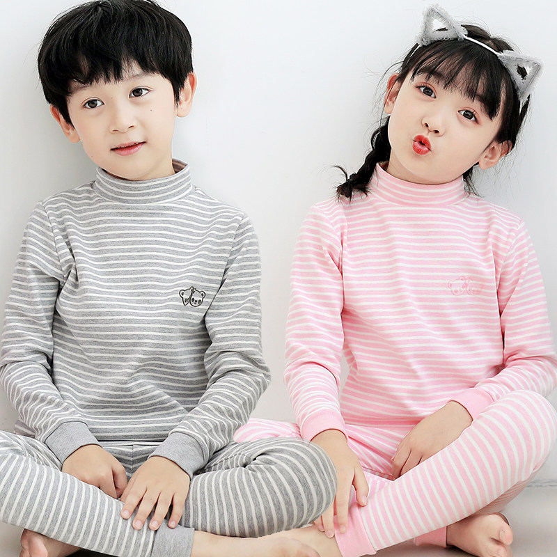 儿童纯棉秋衣秋裤半高领女童保暖内衣套装男孩睡衣宝宝小童棉毛衫